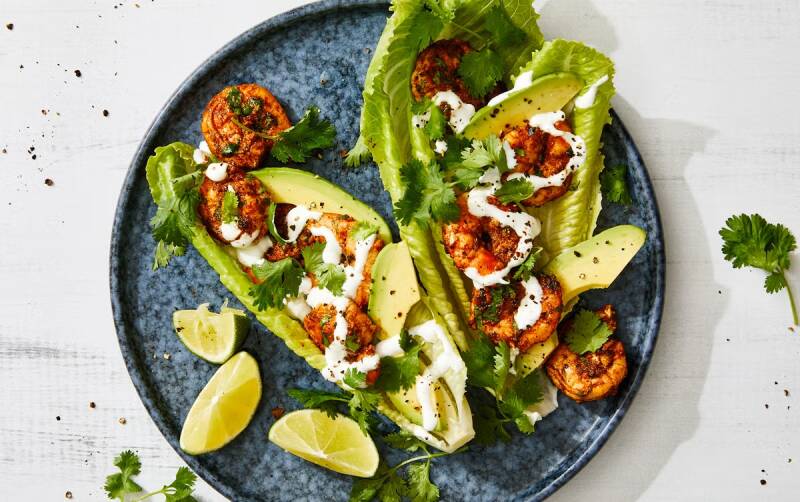 - Serve shrimp in romaine lettuce “wraps” or in a flour tortilla. Top with green onions and Cilantro Garlic Sauce and enjoy!